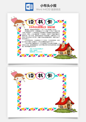 卡通小布头奇遇记小报手抄报Word模板推荐