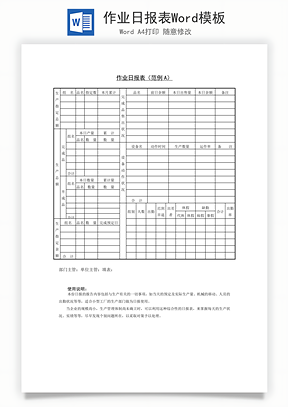 风云办公提供作业日报汇总表Word模板下载,格式为 word,一共1页,作品中文字及图均可以修改和编辑,图片更改请在作品中右键图片并更换,文字修改请直接点击文字进行修改。更多精彩人力资源Word模板,尽在风云办公。