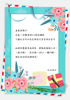 信纸唯美礼物花朵Word模板