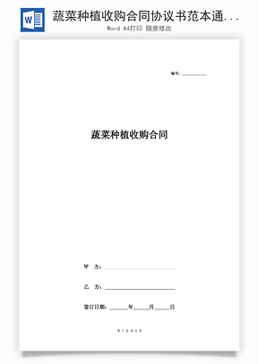 风云办公提供蔬菜供应合同范本Word模板下载,格式为 doc,一共2页,作品中文字及图均可以修改和编辑,图片更改请在作品中右键图片并更换,文字修改请直接点击文字进行修改。更多精彩合同协议Word模板,尽在风云办公。