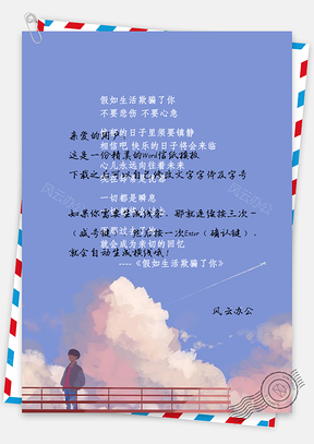 风云办公提供小清新男孩看高楼信纸Word模板下载,格式为 docx,一共1页,作品中文字及图均可以修改和编辑,图片更改请在作品中右键图片并更换,文字修改请直接点击文字进行修改。更多精彩信纸Word模板,尽在风云办公。