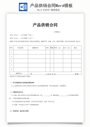 风云办公提供产品供销合同Word模板下载,格式为 doc,一共4页,作品中文字及图均可以修改和编辑,图片更改请在作品中右键图片并更换,文字修改请直接点击文字进行修改。更多精彩合同协议Word模板,尽在风云办公。