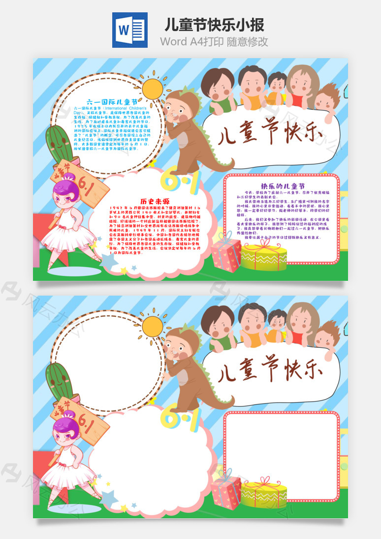 风云办公提供可爱儿童节快乐手抄报Word模板下载,格式为 ,一共1页,作品中文字及图均可以修改和编辑,图片更改请在作品中右键图片并更换,文字修改请直接点击文字进行修改。更多精彩手抄报/小报Word模板,尽在风云办公。