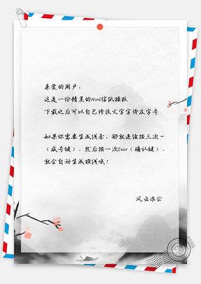 风云办公提供信纸中国风落花古树白鹤背景Word模板下载,格式为 docx,一共1页,作品中文字及图均可以修改和编辑,图片更改请在作品中右键图片并更换,文字修改请直接点击文字进行修改。更多精彩信纸Word模板,尽在风云办公。