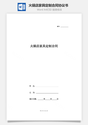 火锅店家具定制合同协议书范本详细版Word模板推荐