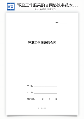 风云办公提供保洁人员工作服采购合同协议书范本通用版Word模板下载,格式为 doc,一共4页,作品中文字及图均可以修改和编辑,图片更改请在作品中右键图片并更换,文字修改请直接点击文字进行修改。更多精彩合同协议Word模板,尽在风云办公。