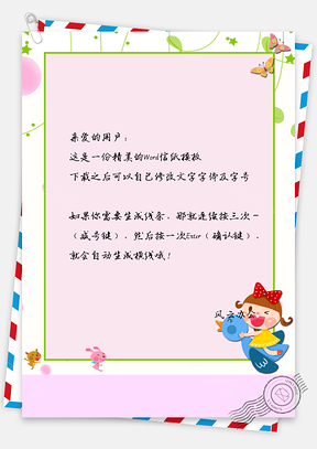 可爱卡通女孩边框信纸Word模板