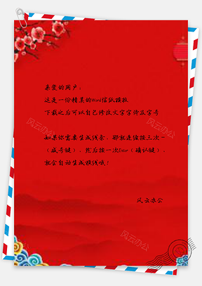 唯美信纸小清新红色大红色传统元旦设计Word模板