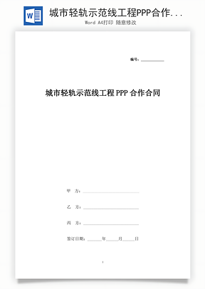 城市轻轨示范线工程PPP合作合同协议书范本Word模板