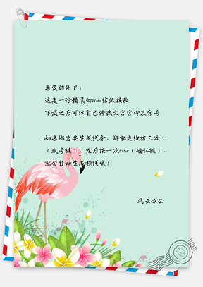 复古风格信纸小清新ins风手绘火烈鸟背景Word模板推荐