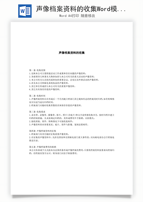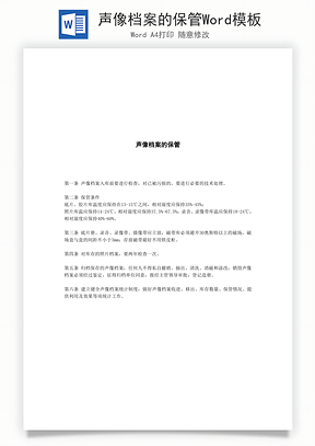 风云办公提供声像档案的开发利用Word模板下载,格式为 word,一共1页,作品中文字及图均可以修改和编辑,图片更改请在作品中右键图片并更换,文字修改请直接点击文字进行修改。更多精彩人力资源Word模板,尽在风云办公。