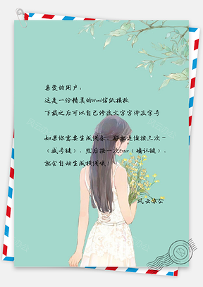 风云办公提供背景图信纸小清新手绘简约花Word模板下载,格式为 docx,一共1页,作品中文字及图均可以修改和编辑,图片更改请在作品中右键图片并更换,文字修改请直接点击文字进行修改。更多精彩信纸Word模板,尽在风云办公。