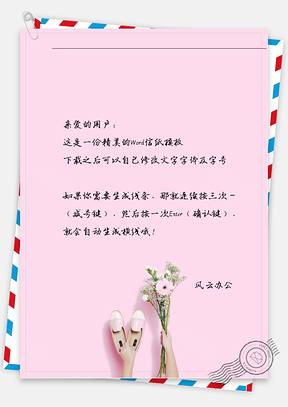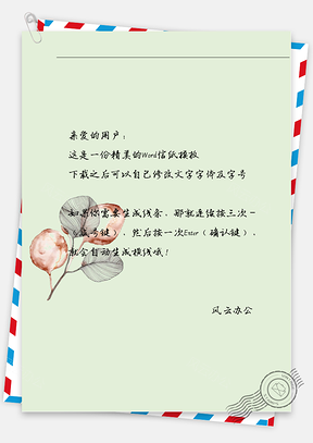 风云办公提供小清新粉花英文信纸Word模板下载,格式为 docx,一共1页,作品中文字及图均可以修改和编辑,图片更改请在作品中右键图片并更换,文字修改请直接点击文字进行修改。更多精彩信纸Word模板,尽在风云办公。