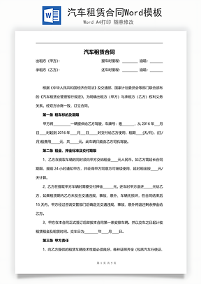风云办公提供租车合同汽车租赁合同Word模板下载,格式为 doc,一共7页,作品中文字及图均可以修改和编辑,图片更改请在作品中右键图片并更换,文字修改请直接点击文字进行修改。更多精彩合同协议Word模板,尽在风云办公。