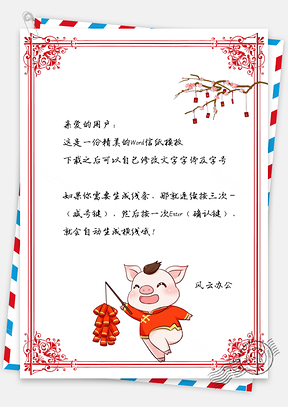 春节信纸猪年红包鞭炮贺岁祝福贺卡Word模板