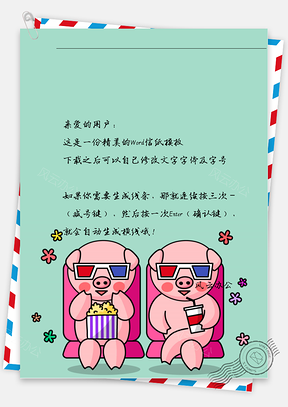 猪年卡通手绘的爱美小猪猪信纸Word模板