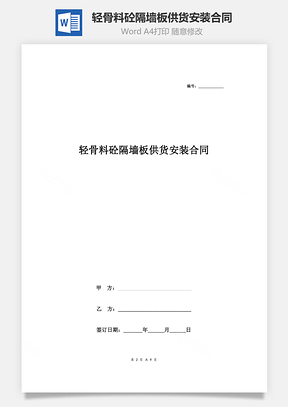 轻骨料砼隔墙板供货安装合同协议书范本详细版Word模板