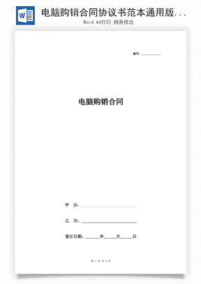 风云办公提供电脑计算机产品购销合同协议书范本Word模板下载,格式为 doc,一共6页,作品中文字及图均可以修改和编辑,图片更改请在作品中右键图片并更换,文字修改请直接点击文字进行修改。更多精彩合同协议Word模板,尽在风云办公。