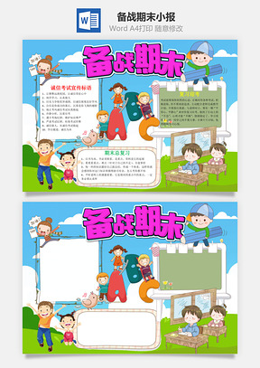 风云办公提供备战期末学习手抄报Word模板下载,格式为 docx,一共1页,作品中文字及图均可以修改和编辑,图片更改请在作品中右键图片并更换,文字修改请直接点击文字进行修改。更多精彩其他Word模板,尽在风云办公。