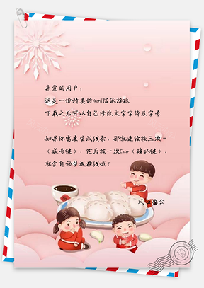 猪年卡通手绘的两个小猪猪信纸Word模板