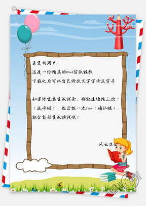 小清新气球可爱阿狸小熊信纸背景图Word模板
