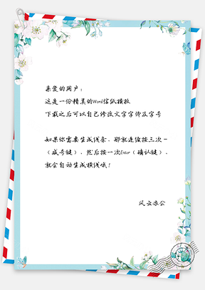 信纸信笺蓝色小清新植物主题背景Word模板