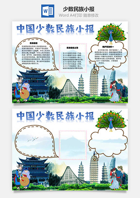 中国风中国少数民族Word小报手抄报Word模板推荐