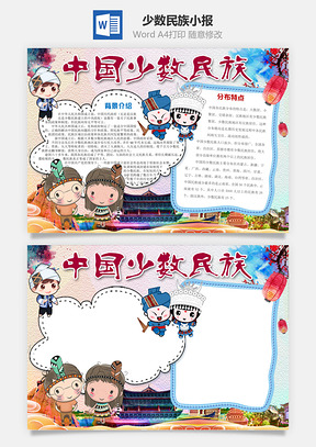 卡通中国少数民族Word小报手抄报Word模板