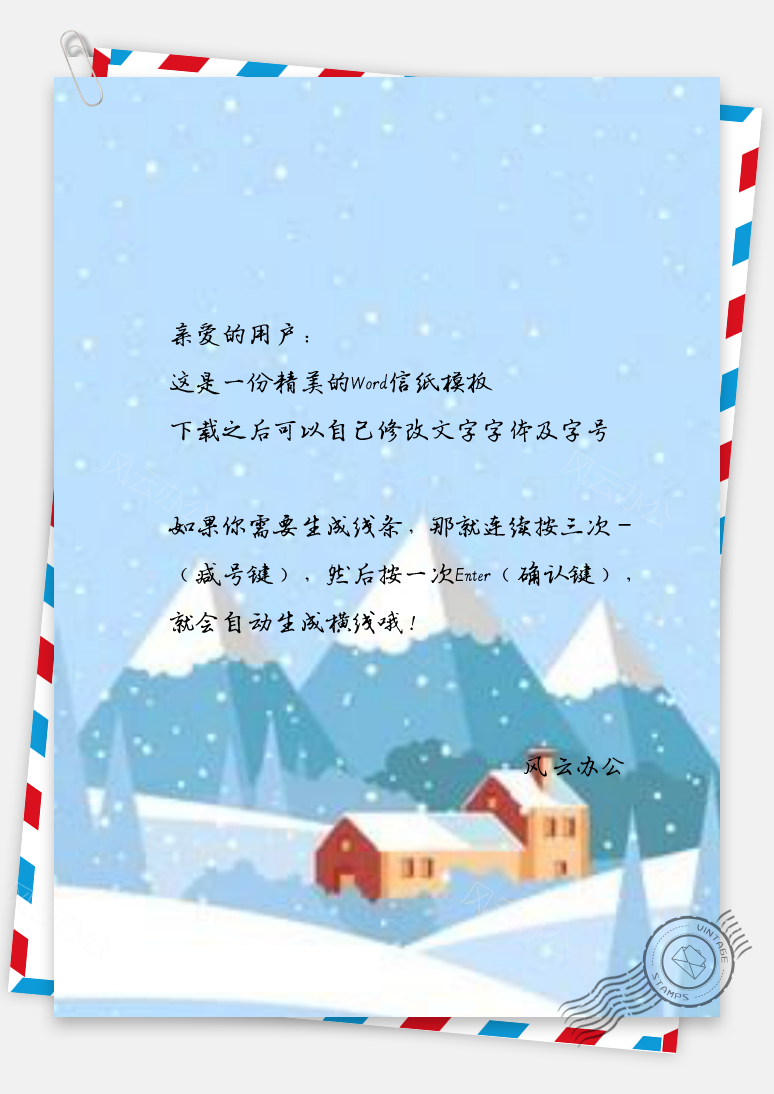 风云办公提供信纸扁平化冬季下雪Word模板下载,格式为 docx,一共1页,作品中文字及图均可以修改和编辑,图片更改请在作品中右键图片并更换,文字修改请直接点击文字进行修改。更多精彩信纸Word模板,尽在风云办公。