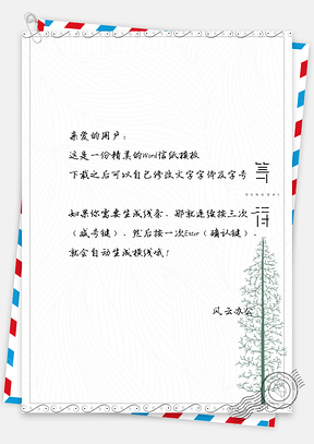 风云办公提供简约小清新简约大树信纸Word模板下载,格式为 docx,一共1页,作品中文字及图均可以修改和编辑,图片更改请在作品中右键图片并更换,文字修改请直接点击文字进行修改。更多精彩信纸Word模板,尽在风云办公。