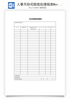 人事月份式赔偿处理报表Word模板