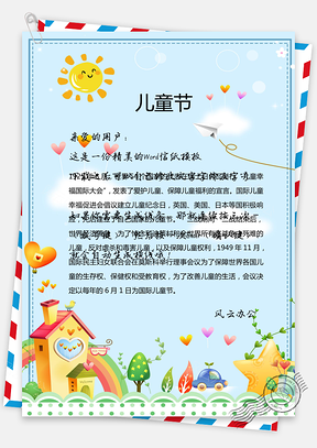 儿童节日卡通可爱信纸Word模板