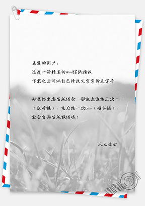 风云办公提供信纸草白色博克轻夏季自然Word模板下载,格式为 docx,一共1页,作品中文字及图均可以修改和编辑,图片更改请在作品中右键图片并更换,文字修改请直接点击文字进行修改。更多精彩信纸Word模板,尽在风云办公。