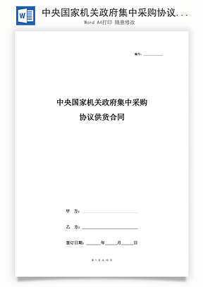 中央国家机关政府集中采购协议供货合同协议书范本标准版Word模板