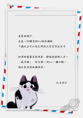 风云办公提供可爱黑猫信纸Word模板下载,格式为 docx,一共1页,作品中文字及图均可以修改和编辑,图片更改请在作品中右键图片并更换,文字修改请直接点击文字进行修改。更多精彩信纸Word模板,尽在风云办公。