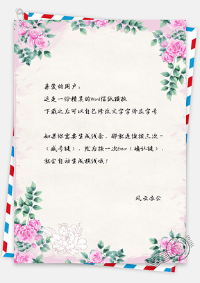 风云办公提供手绘花朵夏日小清新信纸Word模板下载,格式为 docx,一共1页,作品中文字及图均可以修改和编辑,图片更改请在作品中右键图片并更换,文字修改请直接点击文字进行修改。更多精彩信纸Word模板,尽在风云办公。