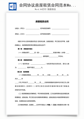 风云办公提供房屋租赁合同协议范本参考Word模板下载,格式为 docx,一共4页,作品中文字及图均可以修改和编辑,图片更改请在作品中右键图片并更换,文字修改请直接点击文字进行修改。更多精彩合同协议Word模板,尽在风云办公。