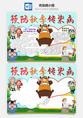 手抄报模板卡通预防秋季传染病Word小报手抄报Word模板