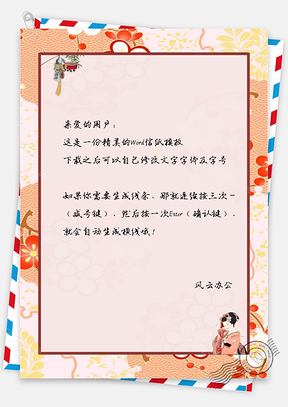 日系小清新唯美水彩手绘女孩信纸Word模板