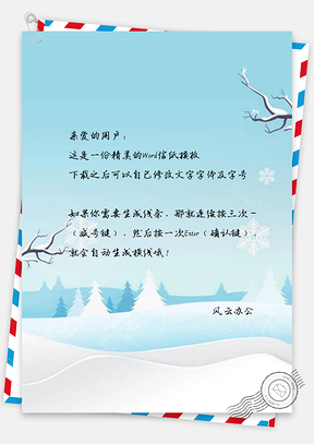 信纸小清新蓝色唯美浪漫树林雪景Word模板