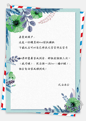 风云办公提供信纸花藤植物Word模板下载,格式为 docx,一共1页,作品中文字及图均可以修改和编辑,图片更改请在作品中右键图片并更换,文字修改请直接点击文字进行修改。更多精彩信纸Word模板,尽在风云办公。
