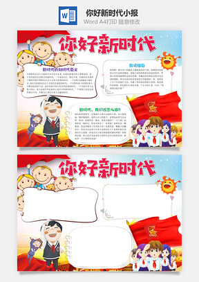 儿童卡通可爱你好新时代小报手抄报Word模板