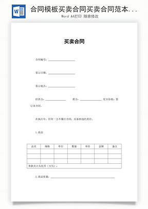 风云办公提供合同模板产品买卖合同Word模板下载,格式为 docx,一共5页,作品中文字及图均可以修改和编辑,图片更改请在作品中右键图片并更换,文字修改请直接点击文字进行修改。更多精彩合同协议Word模板,尽在风云办公。
