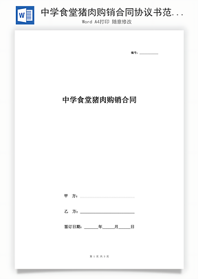 风云办公提供学校食堂猪肉购销合同Word模板下载,格式为 doc,一共3页,作品中文字及图均可以修改和编辑,图片更改请在作品中右键图片并更换,文字修改请直接点击文字进行修改。更多精彩合同协议Word模板,尽在风云办公。