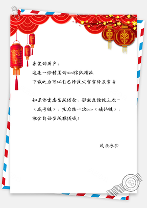 风云办公提供信纸中国风手绘中国红福挂饰Word模板下载,格式为 docx,一共1页,作品中文字及图均可以修改和编辑,图片更改请在作品中右键图片并更换,文字修改请直接点击文字进行修改。更多精彩信纸Word模板,尽在风云办公。