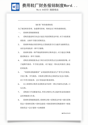 风云办公提供鞋厂财务报销制度Word模板下载,格式为 word,一共1页,作品中文字及图均可以修改和编辑,图片更改请在作品中右键图片并更换,文字修改请直接点击文字进行修改。更多精彩财务管理Word模板,尽在风云办公。