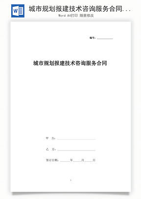 城市规划报建技术咨询服务合同协议书范本Word模板