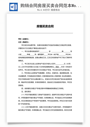 风云办公提供买卖合同商品房购销合同范本Word模板下载,格式为 doc,一共13页,作品中文字及图均可以修改和编辑,图片更改请在作品中右键图片并更换,文字修改请直接点击文字进行修改。更多精彩合同协议Word模板,尽在风云办公。