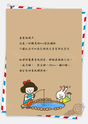 可爱卡通女孩钓鱼信纸Word模板推荐