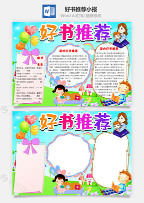 好书推荐word小报手抄报Word模板推荐